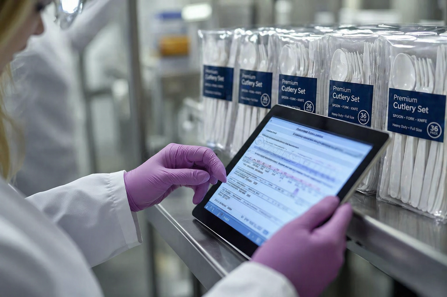 Every hour, the finished and packed products are physically inspected on the production floor before palletizing.